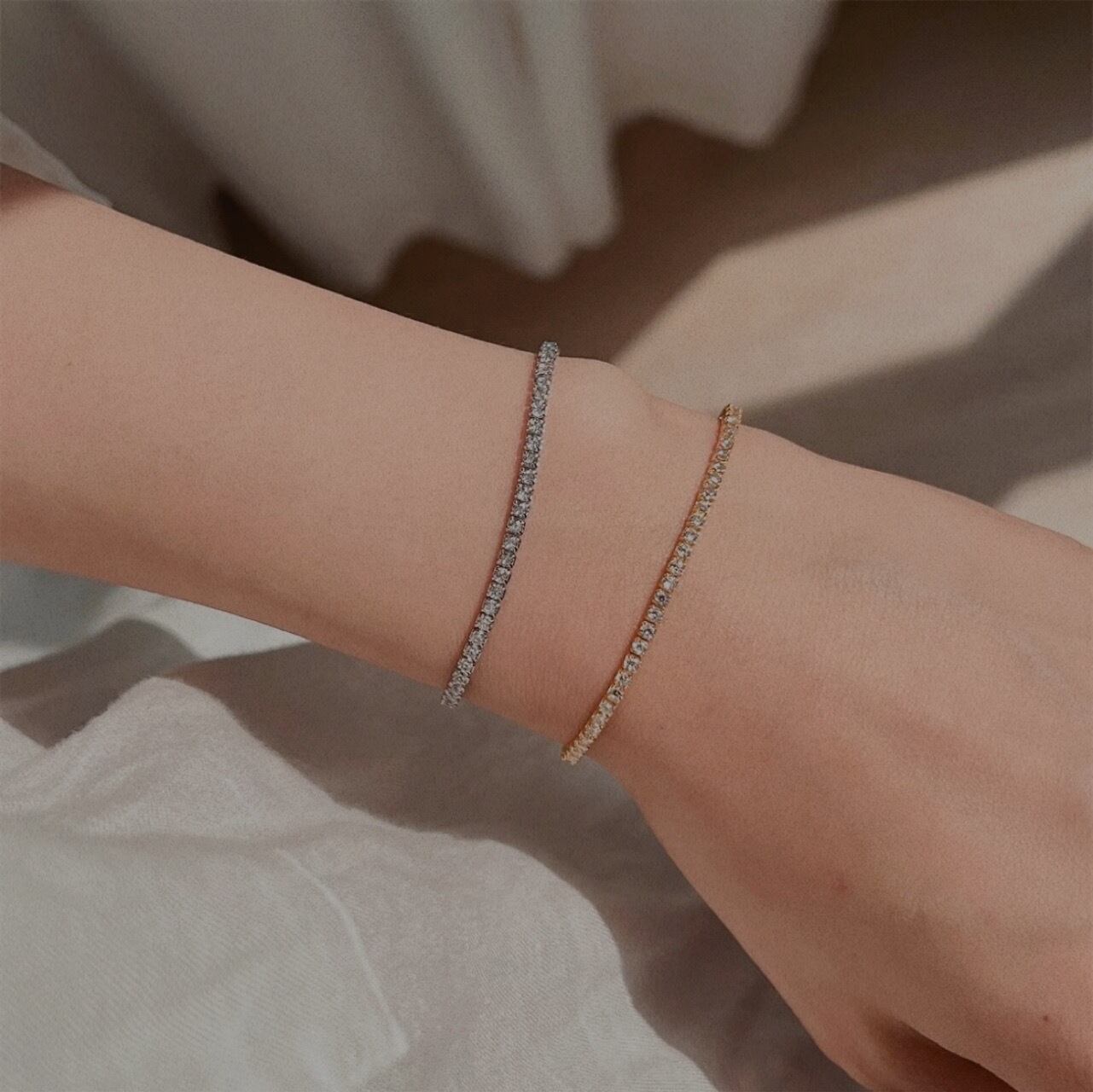 上品な輝きを放つ、ジルコニアテニスブレスレットのご紹介です。